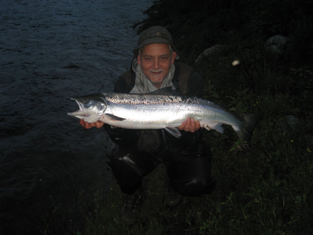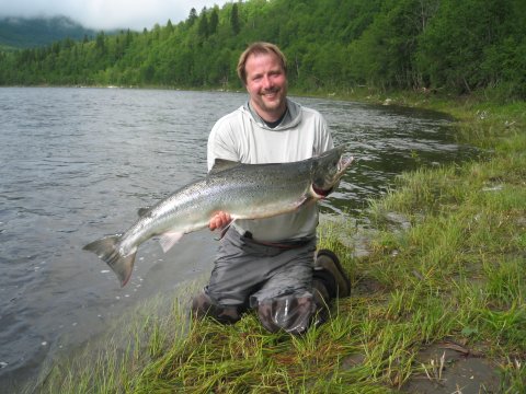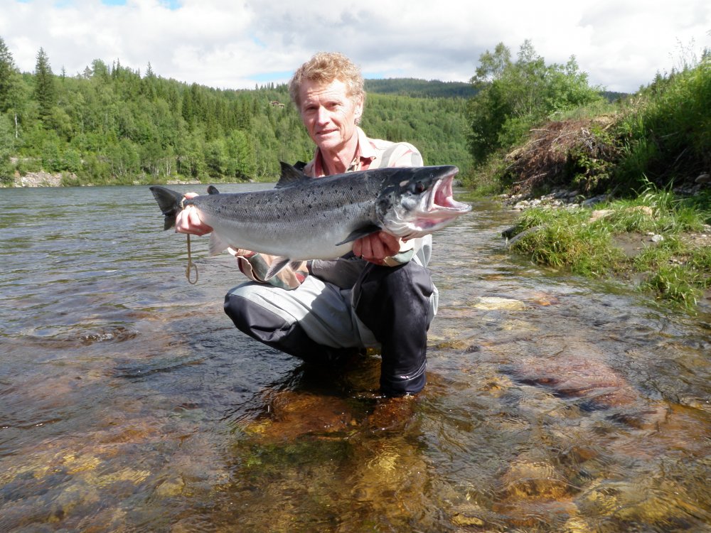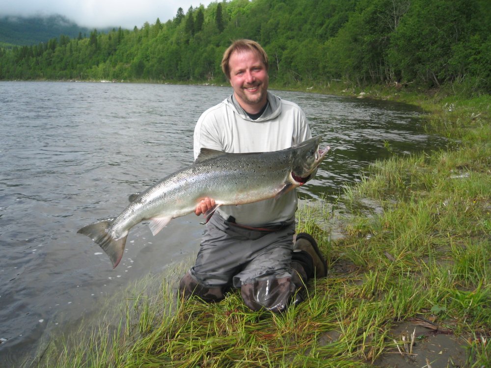 Michael med hans første laks fra Norge - fin fisk på 5,9 kg