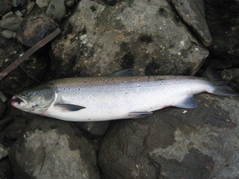 |  Hanlaks på 102 cm & ca. 9 kg c & r - uge 30. |  Nygåt hunlaks på 103 - 104 cm - 30. |